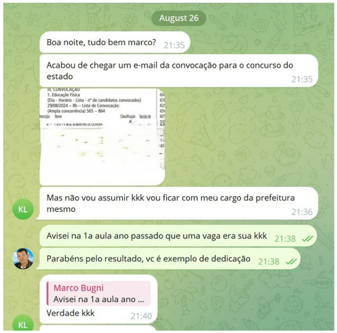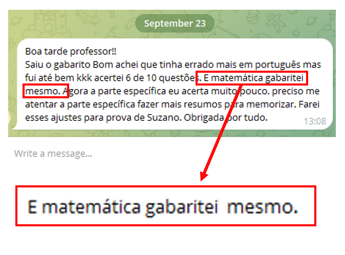 Não é fácil manter a motivação todos os dias. Com os grupos de Telegram, as questões vêm até você, isso aumenta seus estímulos e você estudará muito mais.